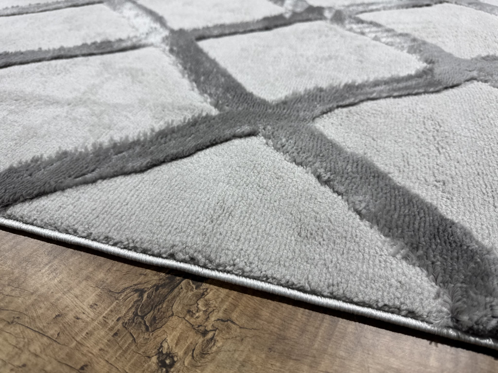 Nagyon puha, kellemes tapintású szőnyeg, modern 3D-s geommetrikus mintákkal, gyártási technológia miatt a színek akár 5% eltérést is mutathatnak.