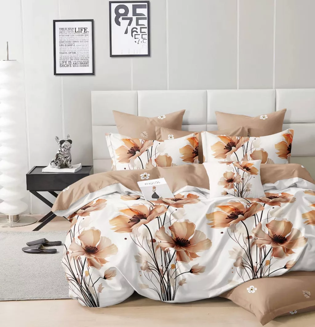 Selyra fehér bézs mákvirág virág mintás ágyneműhuzat garnitúra 3 részes