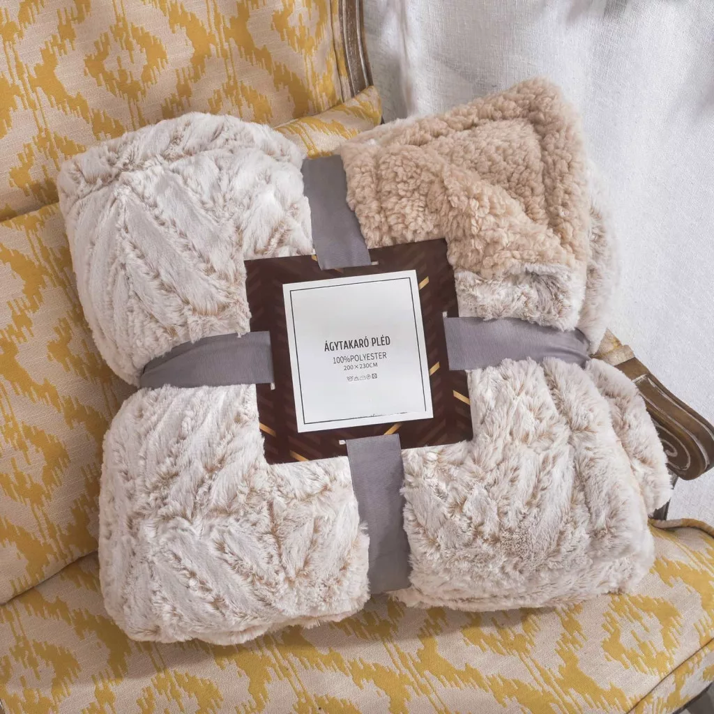 Sherpa Nyuszi kétoldalas vastag ágytakaró/pléd bézs 150x200cm