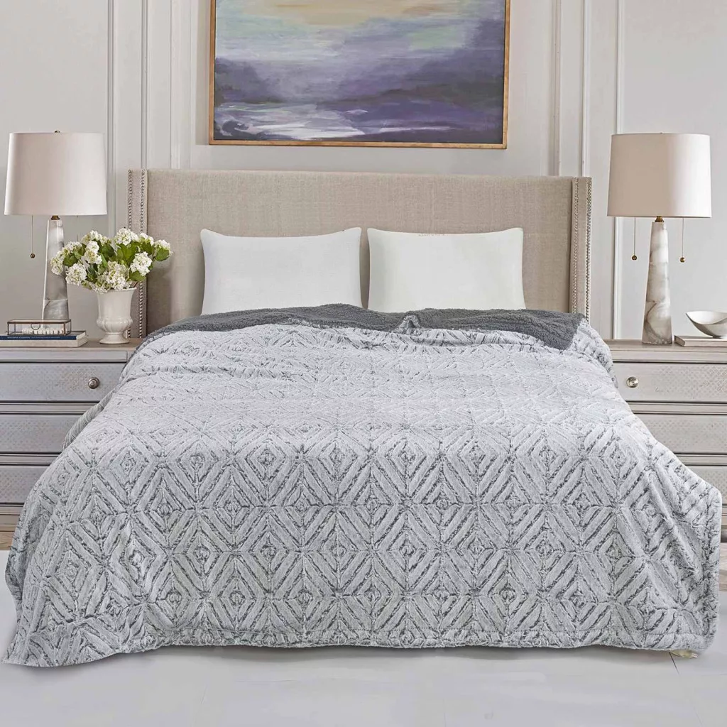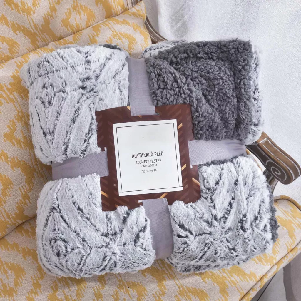 Sherpa Nyuszi kétoldalas vastag ágytakaró/pléd sötétszürke 150x200cm