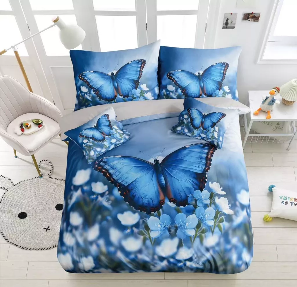 Velina kék pillangó mintás ágyneműhuzat garnitúra 3 részes